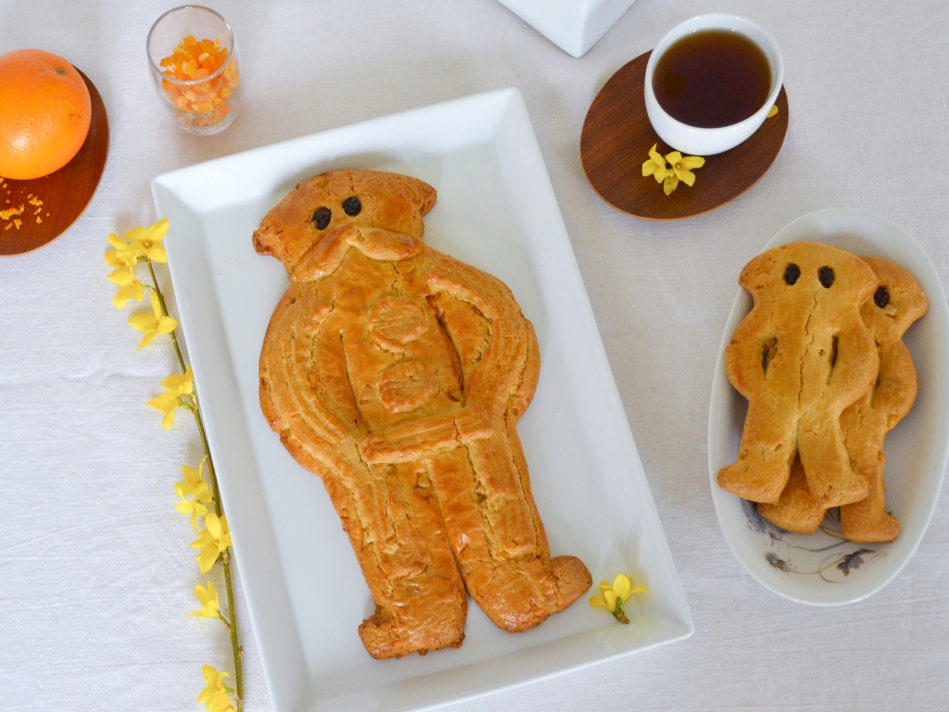 BIscuit sablé délicatement parfumé à la fleur d'oranger et aux écorces d'oranges confites, le "suisse" ou "pantin" s'invite à la Biscuiterie jusqu'à Pâques.